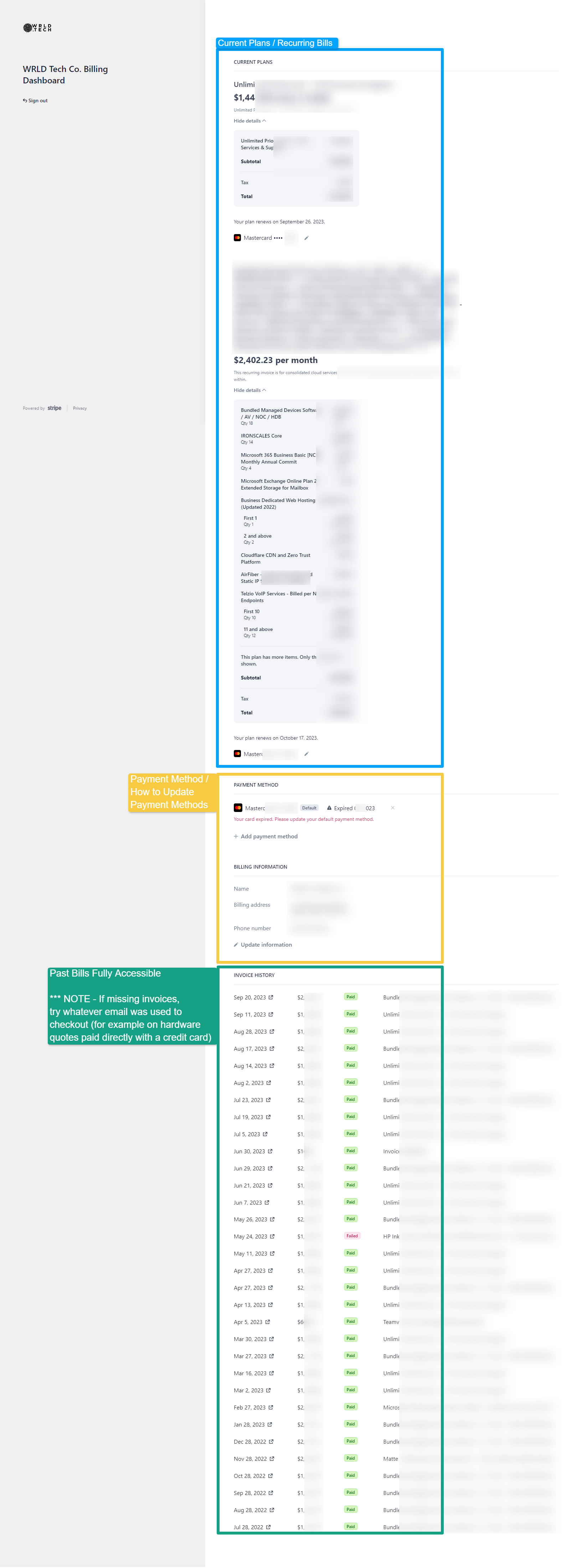 Below is a breakdown screenshot of the landing page of your billing page. You can see a censored quick view of what you will see when you log in.